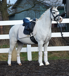 Zum Verkauf steht in Vertretung des Besitzers, dieser beeindruckend schöne, 128 cm große, 9-jährige, hollandische Welsh Schimmel Wallach von WESLA REYSOR x FRONBACH HELLO CAMPERS.